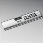 Massstab CALCULATOR Die Zierde für jedes Pult! Silberfarbiger Massstab mit eingebautem Rechner und transparentem Zentimeter- und Inch-Mass. Länge 20cm.