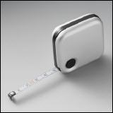Sehr schön präsentierender Rollmeter mit grosser Werbefläche. Silberfarbiges Aluminium Gehäuse, gute Verarbeitung. Mit Arretierknopf.