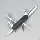 Hinter seinem gediegenen Design «verstecken» sich die wichtigsten Werkzeuge des täglichen Lebens: Messer, Schere, Büchsenöffner, Zapfenzieher... total sieben Funktionen. Das schöne Taschenmesser wird in einer attraktiven Blechbox geliefert. Länge 9 cm.